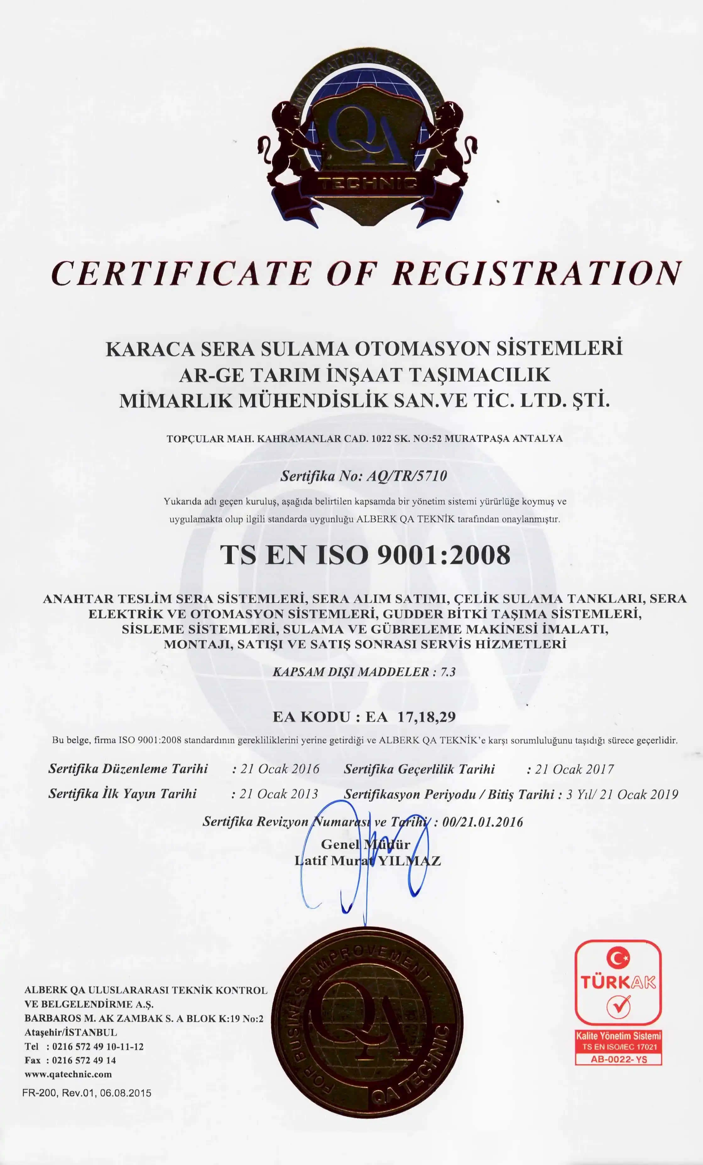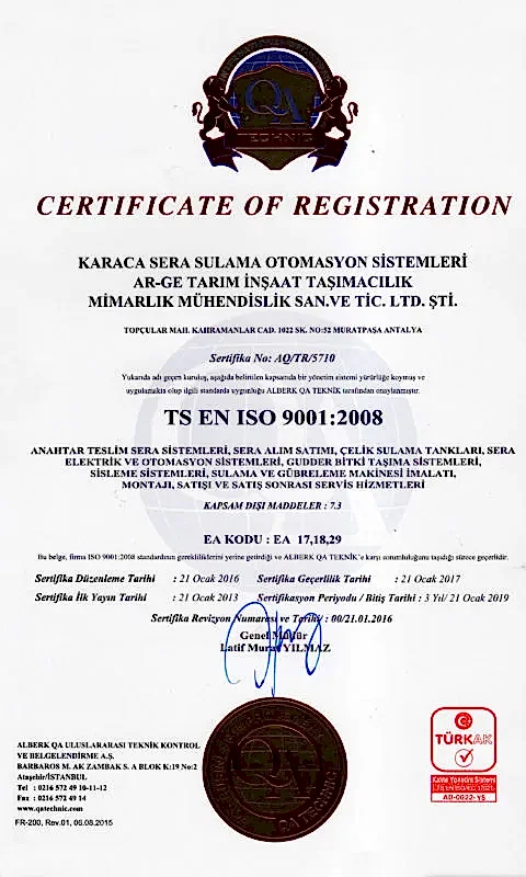 ISO 9001-2008, CE ve GOST-R belgesi olan şirketimiz portföyünde bulunan ürünler konusunda rekabetçi ulusal ve uluslar arası pazarlarda daha aktif çalışabilmek için aşağıdaki presnsipleri benimsemiştir.